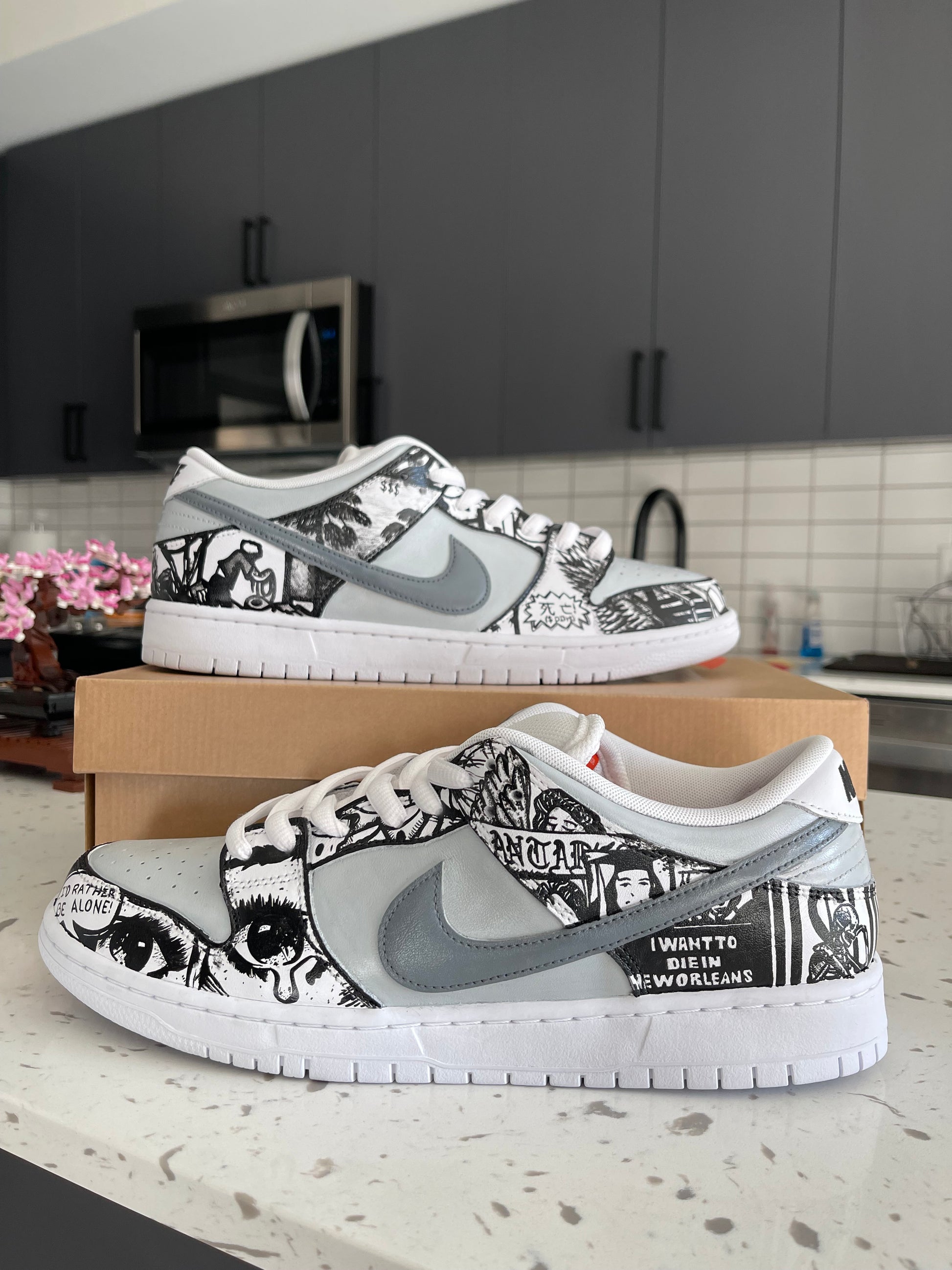 This hand painted pair of customs takes shape by combining some of the best works of the “$uicideboy$,” with a new creative outlook.