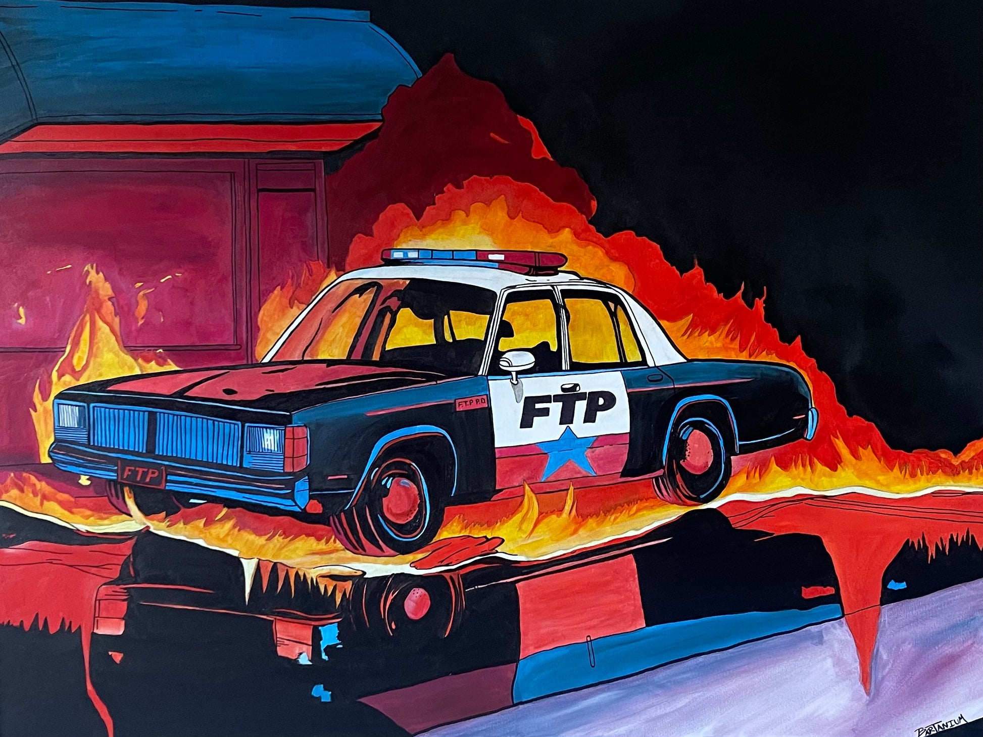 This 2024 piece came to life as an attempt to work with the brand @ftp . Taking direct inspiration from the infamous 2017 $uicideboy$ Riot at FTPxFUCT. This piece offers a bright/abstract view on the setting of what looked to be a one of a kind concert.